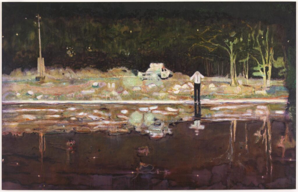 ベルギー出身のリュック・タイマンスは、歴史的暴力と記憶の問題を扱う画家です 。写真や映画の静止画など既存イメージをもとに、色褪せたような抑えた色調とぼかした輪郭で、ありふれた事物として描くのが特徴です 。